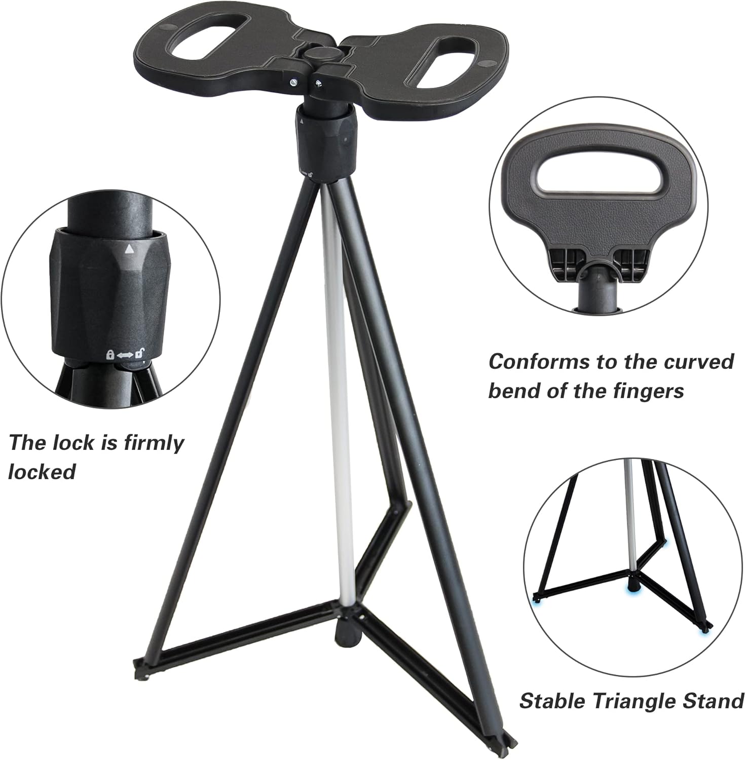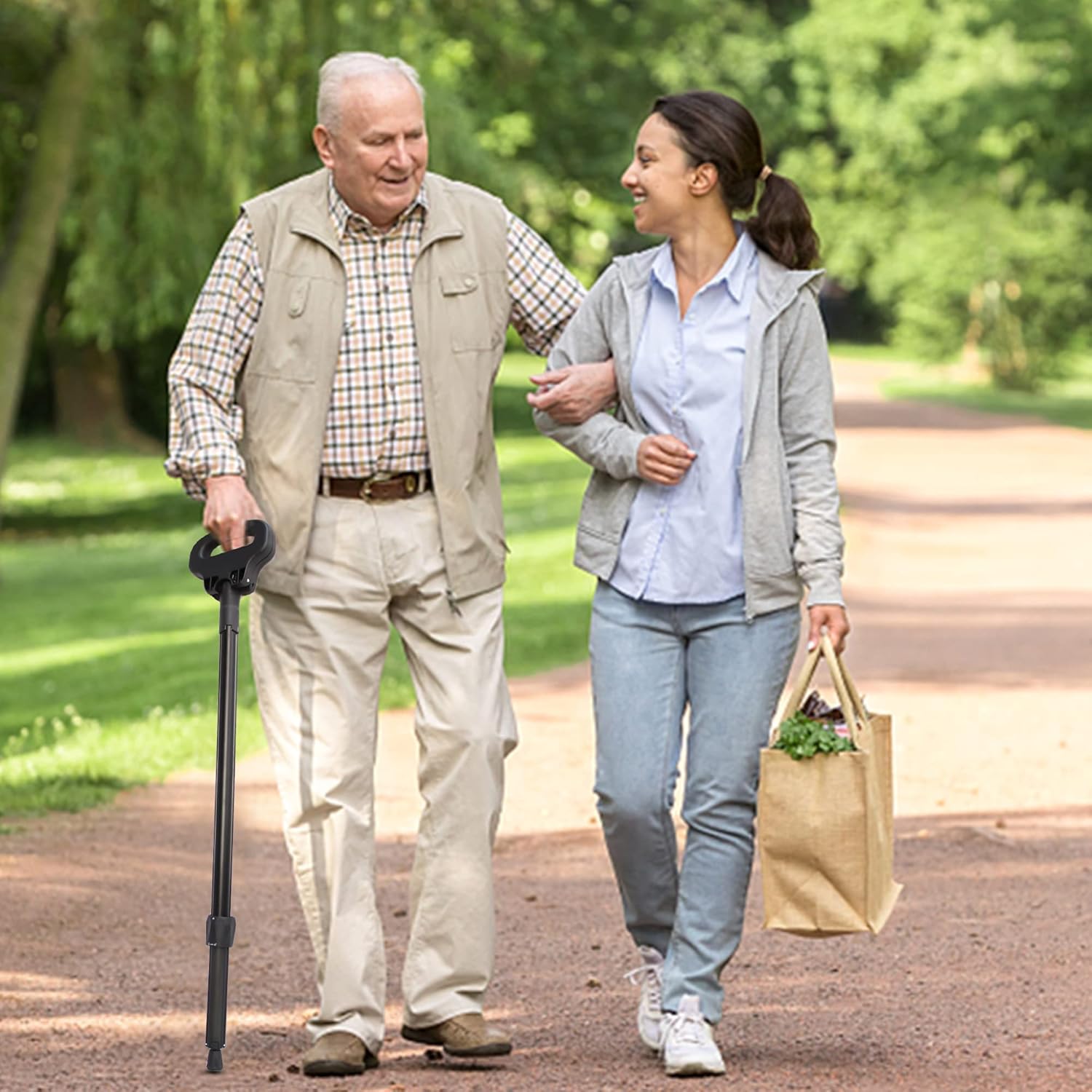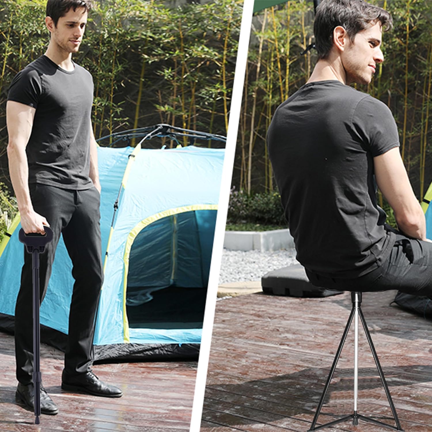 عصا مشي خفيفة تتحول في ثانية إلى مقعد ثلاثي ثابت. حل عملي لكبار السن، والمنتظرين لفترات طويلة، والرحلات والمعارض والطوابير.